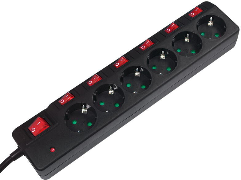 6x biztonsági aljzat 7 világító BE/KI kapcsolóval Kimenetek 45 -os helyzetben Aljzatok biztonsági zárral IP20: 12,5 mm-nél nagyobb szilárd tárgyak behatolása és ujjakkal való érintkezés elleni védelem Minden aljzat külön-külön kapcsolható; egy további főkapcsolóval a teljes aljzatszalag be- és kikapcsolható Túlfeszültség védelem Szögletes biztonsági csatlakozó Teljesítmény: 230 V/16 A, 50 Hz, max. 3680 W Kábel specifikáció: H05VV-F 3G 1,5 mm2 Kábel hossza: 1,5 m Fekete szín Általános termékadatok: Súly: 0,505 kg Magasság: 3,5 cm Szélesség: 7 cm Hossza: 32 cmGyártó: LogiLinkSzélesség cm: 13Hosszúság cm: 35,5Magasság cm: 4