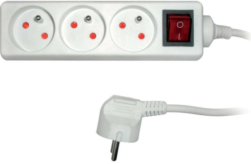 Hosszabbító vezeték kapcsolóval Hossz: 2 m Fiókok száma: 3 Vezeték keresztmetszete: 3 x 1,0 mm2 Illesztőprogram: H05VV-F3G