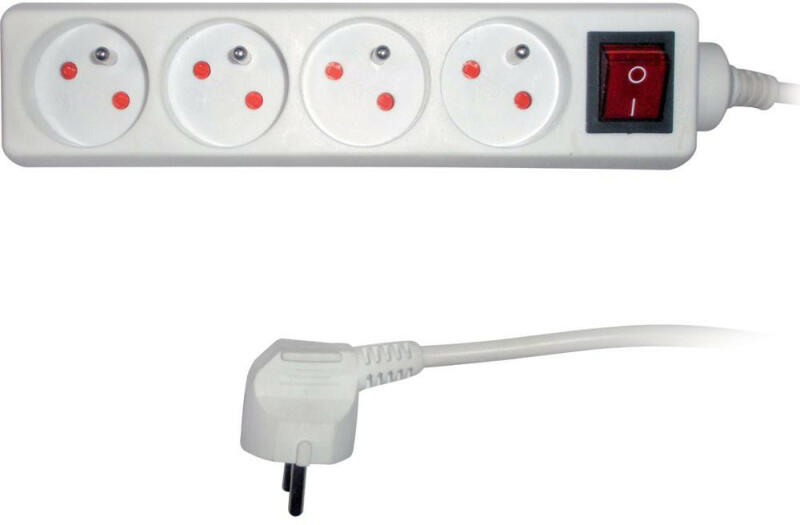 Hosszabbító vezeték kapcsolóval Hossz: 3 m Fiókok száma: 4 Vezeték keresztmetszete: 3 x 1,0 mm2 Illesztőprogram: H05VV-F3G