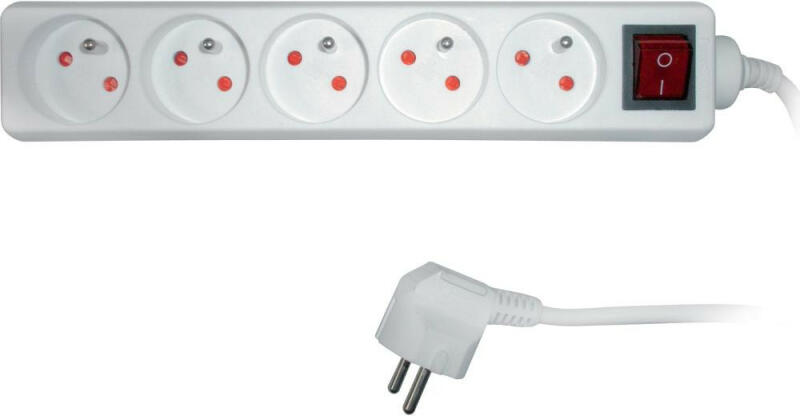 Hosszabbító vezeték kapcsolóval Hossz: 3 m Fiókok száma: 5 Vezeték keresztmetszete: 3 x 1,0 mm2 Illesztőprogram: H05VV-F3G