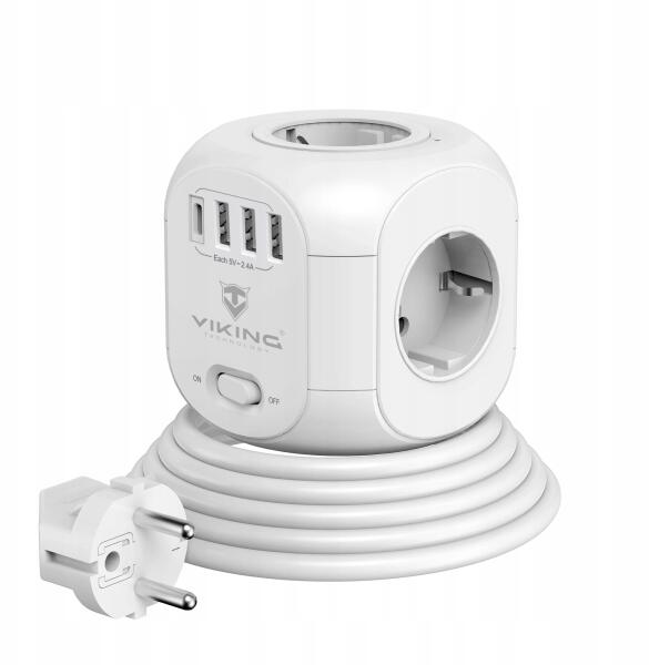 Viking Technology hosszabbító kábelszalag 1, 8 m, 4 db aljzat, fehér (8595656509172)ALLEGRO
