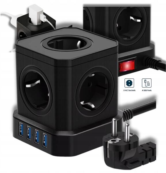 VOOMY Smart tápkocka 5xAC 4xUSB díszléc 2m On/off gyorstöltés (8720153811712)ALLEGRO